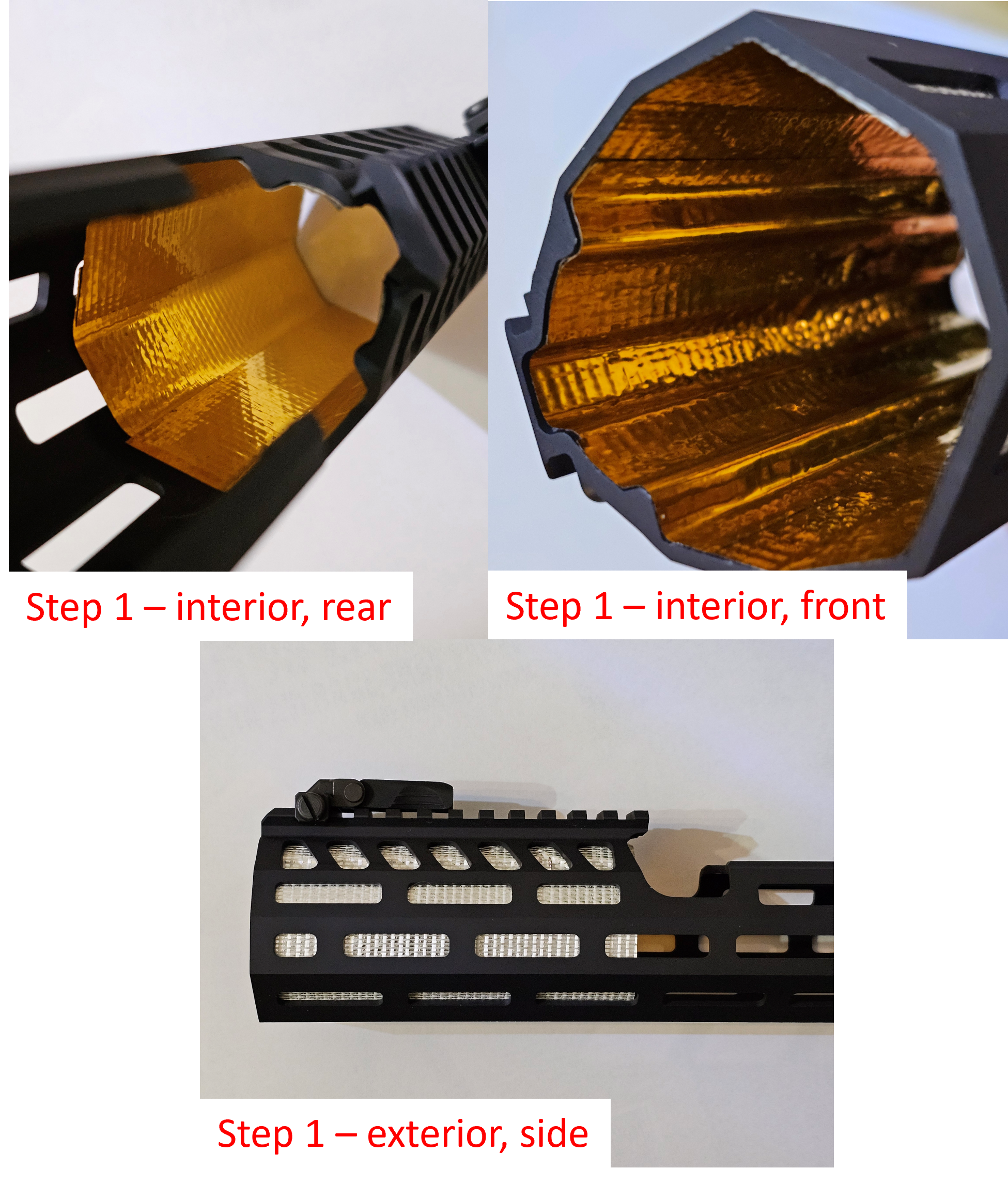 Step 1: Use reflective tape to line the interior of the handguard where the silencer is located.