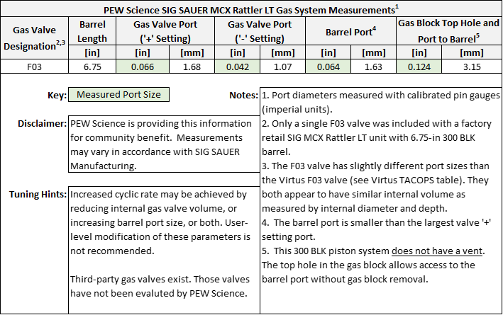 Sig Sauer MCX Rattler LT Gas System Measurements