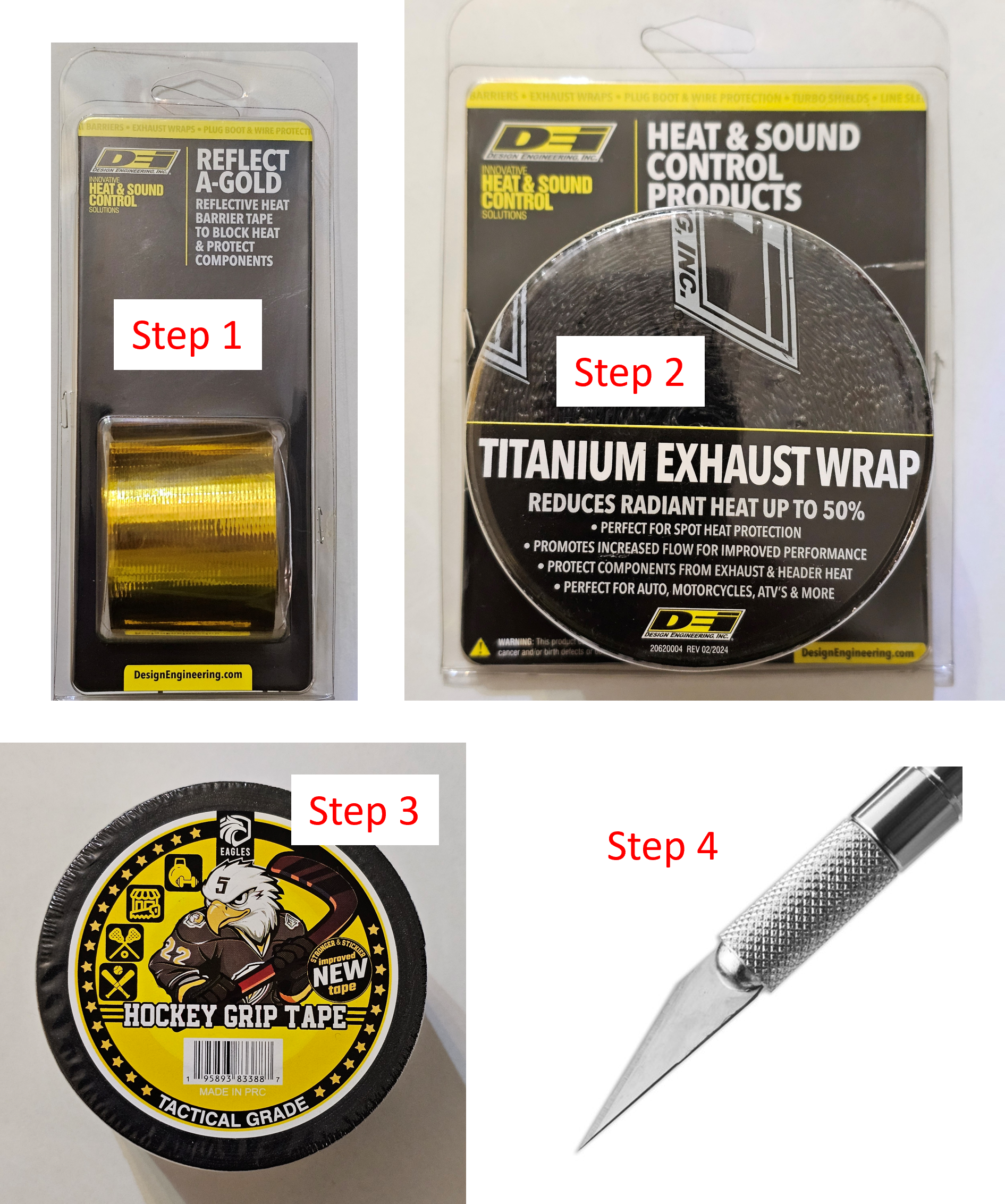 Step 2: Use basalt impregnated titanium exhaust wrap on the outside of the handguard to insulate the operator’s hands from eventual heat conduction.